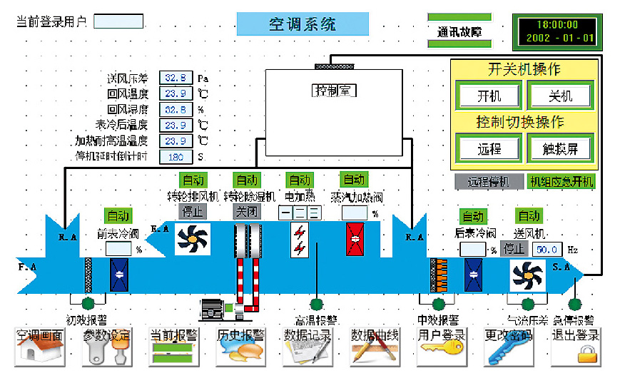 1.回風(fēng)(室內(nèi))溫濕度檢測(cè)及恒溫恒濕控制(循環(huán)機(jī)組)。